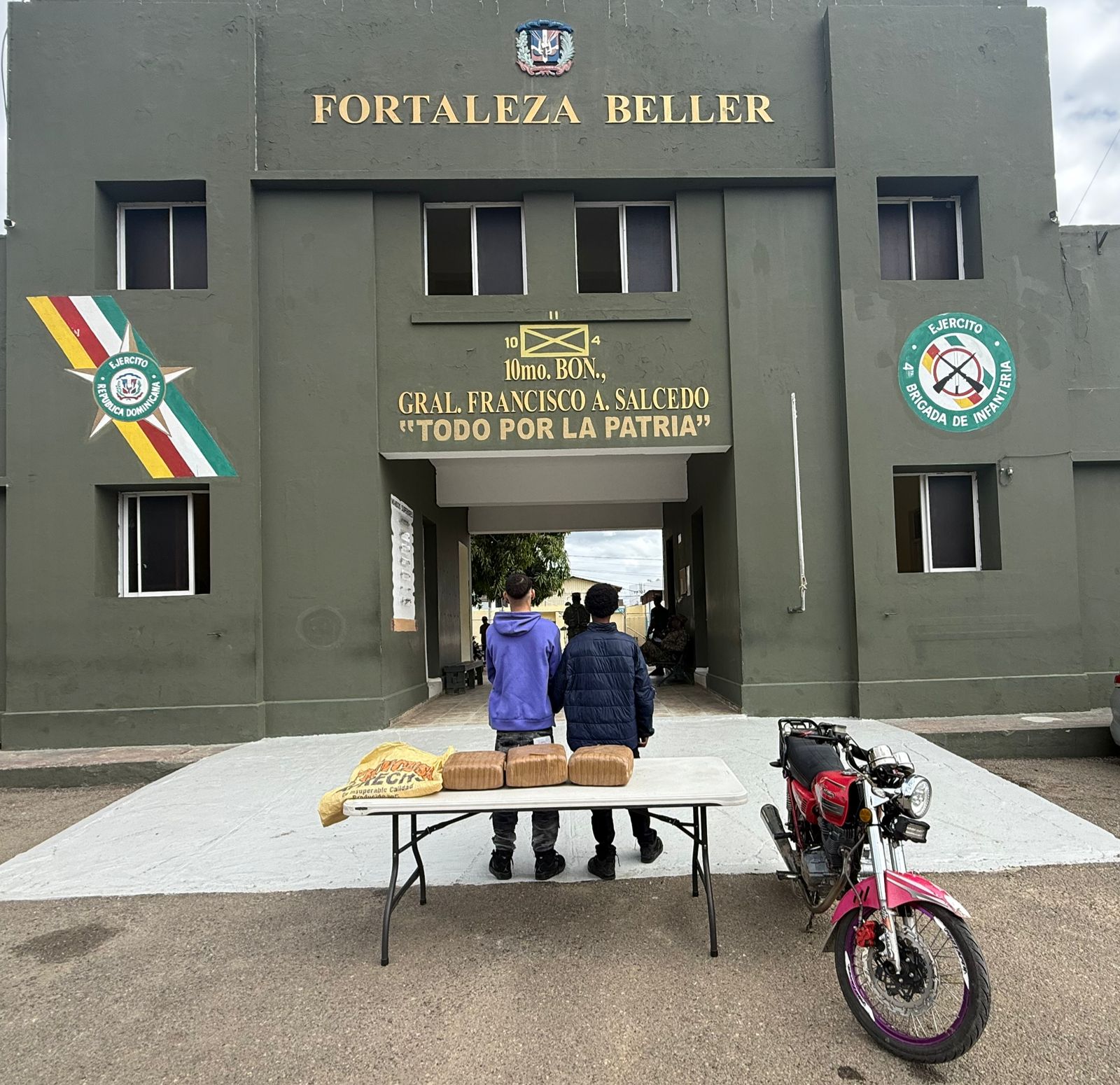 Los detenidos, junto a la sustancia ocupada y la motocicleta retenida, fueron trasladados a la sede del 10mo. Batallón de Infantería del ERD, donde serán puestos a disposición de las autoridades competentes para los fines legales correspondientes.