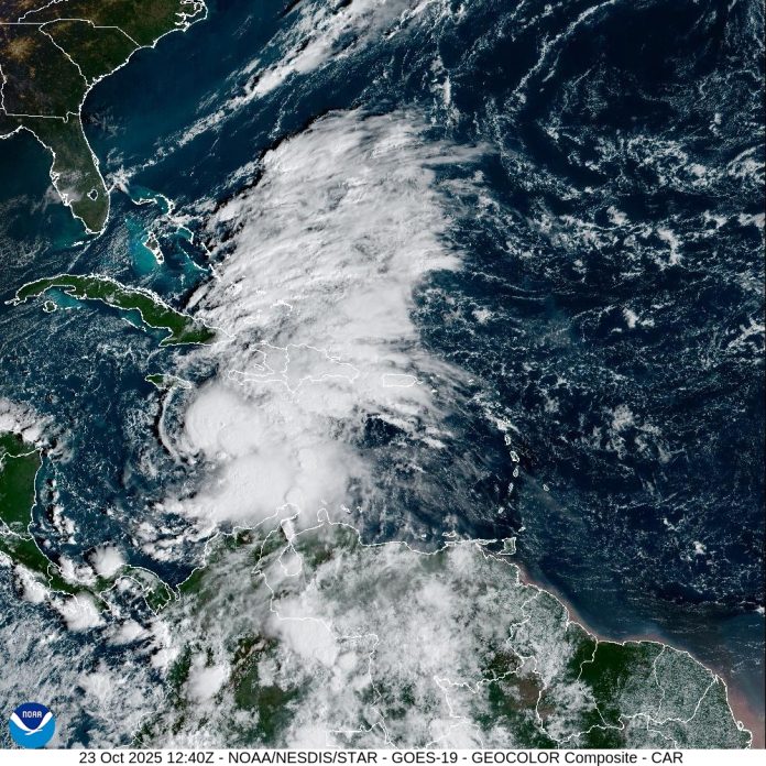 Santo Domingo, R. D. – El Instituto Dominicano de Meteorología (Indomet) advirtió que, continuarán los aguaceros intensos, acompañados de tormentas eléctricas y ráfagas de viento, principalmente, sobre las regiones sureste, suroeste y noroeste, debido a los efectos indirectos de la tormenta tropical Melissa.