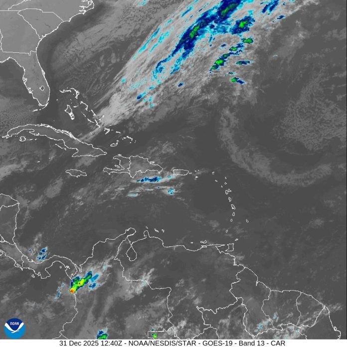 Santo Domingo, R.D.– El Instituto Dominicano de Meteorología (Indomet) informó que, para este miércoles de fin de año y el inicio del Año Nuevo, se pronostican aguaceros en varias regiones del país, como resultado de la incidencia de una vaguada asociada a un sistema frontal, así como de un incremento en los valores de humedad sobre el territorio nacional.