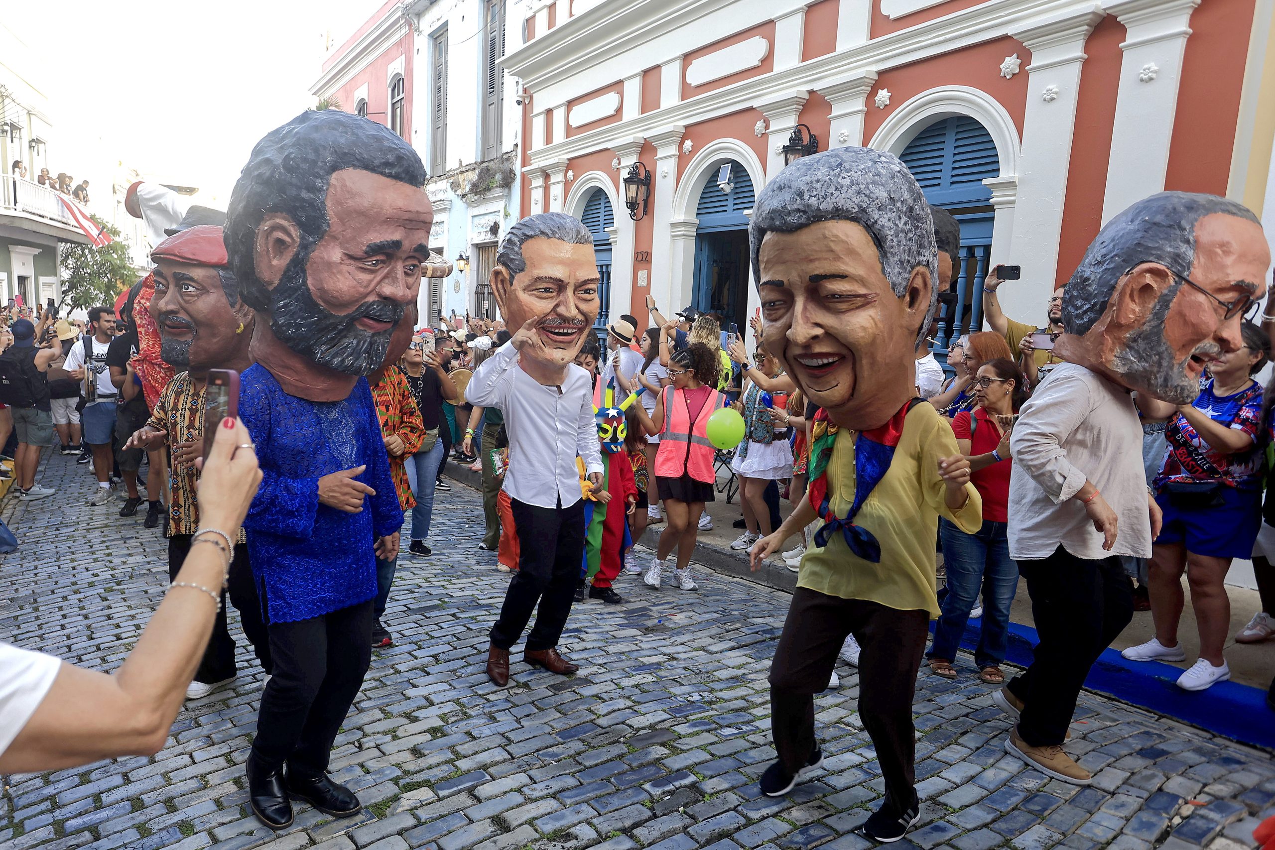 San Juan.- Los famosos cabezudos y zancudos confeccionados por la compañía teatral puertorriqueña Agua, Sol y Sereno reivindican este fin de semana la paz mundial, el medioambiente y la cultura, con un homenaje al reconocido actor Jacobo Morales, que aparece en el documental ‘Debí tirar más fotos’ de Bad Bunny.