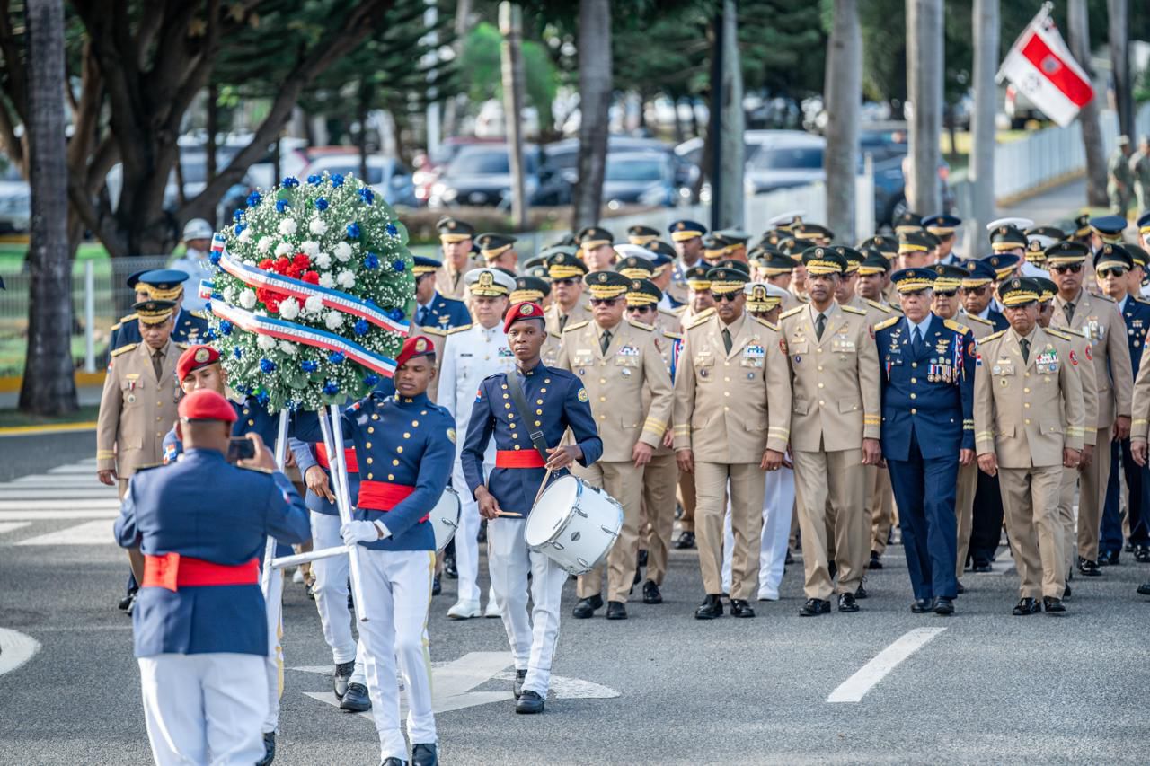 La jornada conmemorativa incluyó, además, el izamiento de la Bandera Nacional, honores militares de estilo, una misa solemne y la tradicional ofrenda floral ante las estatuas de los Padres de la Patria en la sede principal del Ministerio de Defensa, reafirmando el espíritu patriótico que inspira a las Fuerzas Armadas y su compromiso inquebrantable con la nación dominicana.
