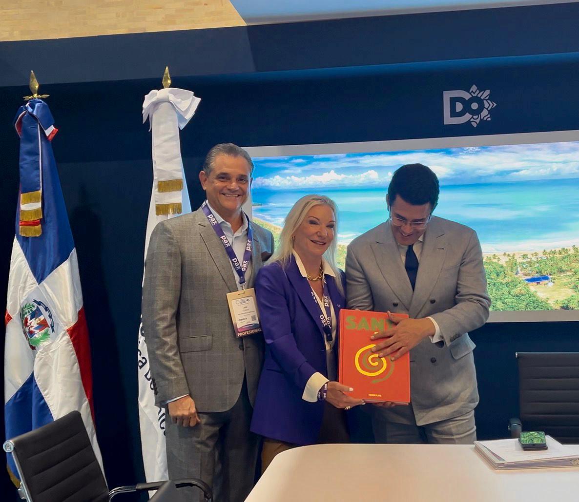 El ministro de Turismo, David Collado, dedicó un ejemplar del libro “Santo Domingo” a Alexia Keglevich, fundadora y CEO de PAX Assistance, principal aseguradora de viajes, durante una reunión en la Vitrina Turística de Anato, (Asociación Colombiana de Agencias de Viajes), en Bogotá, Colombia.