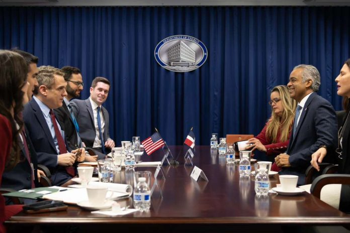 SANTO DOMINGO.– El ministro de Energía y Minas, Joel Santos, sostuvo una reunión con el subsecretario de Energía de los Estados Unidos, James Danly, durante su visita a Washington, D.C., tras la invitación del secretario de Estado, Marco Rubio, para participar en la Ministerial sobre Minerales Críticos.
