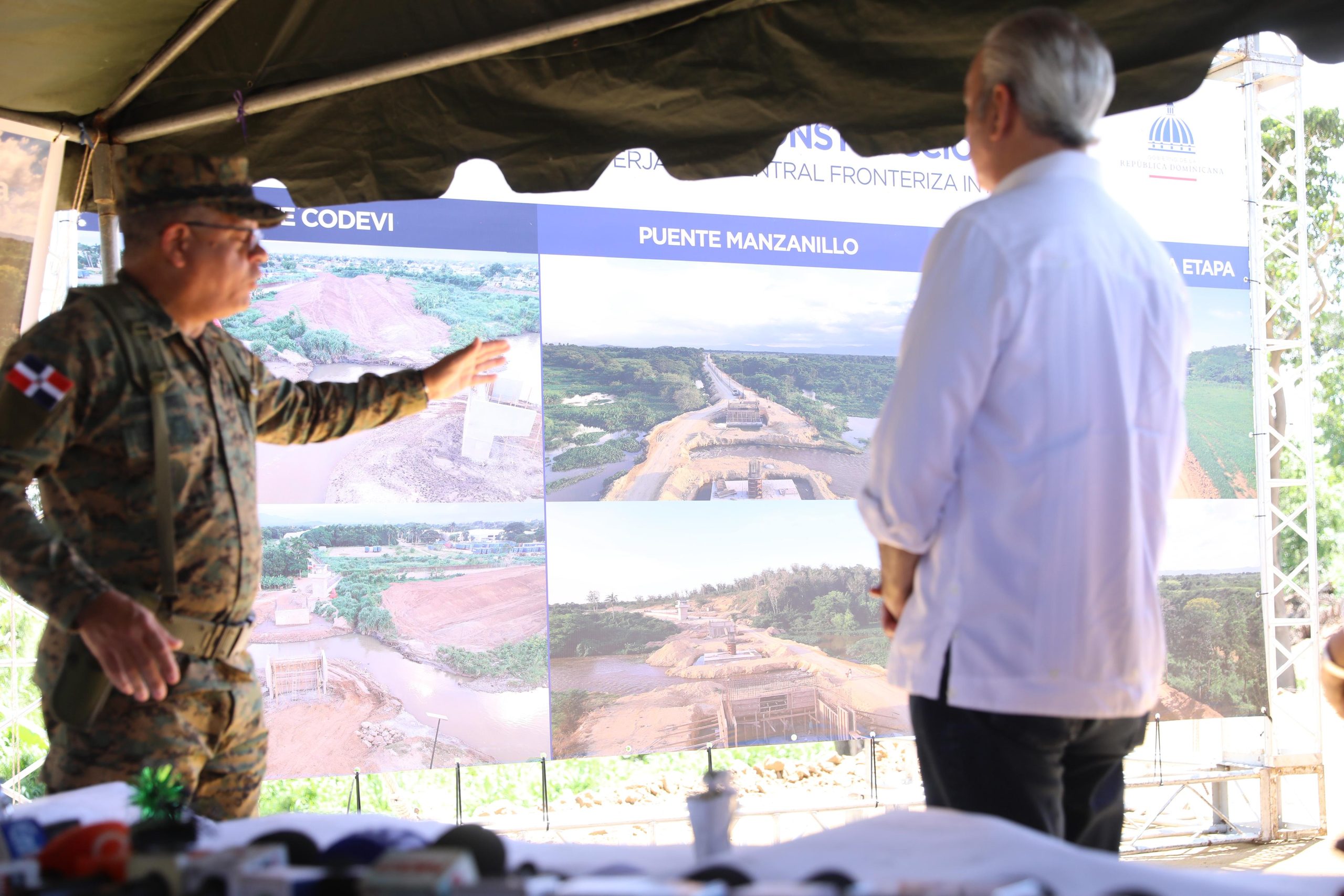 El ministro de Defensa continuó explicando que, la obra incluye también dos puentes, uno de 130 metros de largo y otro de 30 metros de largo. «De Manzanillo a Dajabón va a tener la misma fibra óptica, asimismo la parte sur del país, donde tenemos el muro construido, vamos a tener fibra óptica señor presidente».